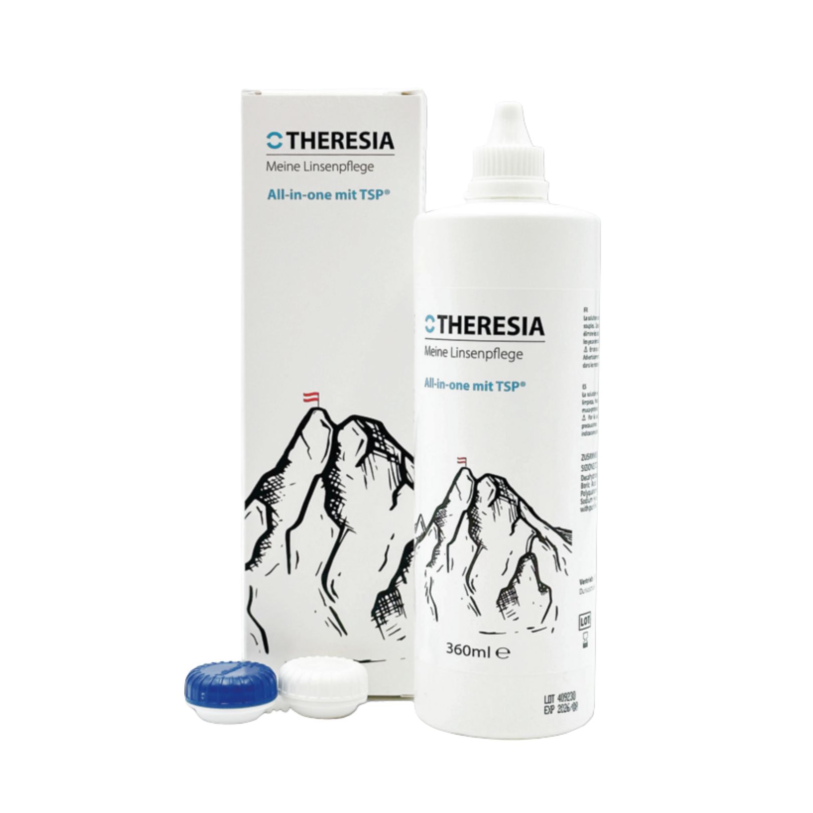 Die Theresia All-in-One Lösung unterstützt durch ihre umfassende Pflegewirkung ein durchgehend komfortables und sicheres Linsentragen, indem sie die Linsen von Ablagerungen befreit und ihre Benetzbarkeit erhält.